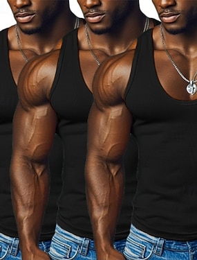 Bărbați Bluză Sub Cămașă Cămașă fără mâneci Cămașă musculară Fără manșon U Adânc Scoateți gâtul Vară Culoare solidă Pit Strip Modă Designer Sportiv Striat Simplu În aer liber Casual Ieșire Negru Alb