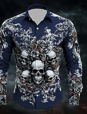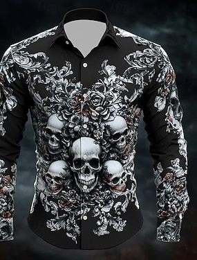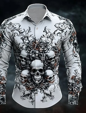 Bărbați Cranii Ziua morților Trandafir Cămașă Camașă cu nasturi Cămașă elegantă casual Manșon Lung Punk întunecat gotic Concediu Vară Primăvară Răsfrânt Imprimare 3D cămăși cu guler Alb