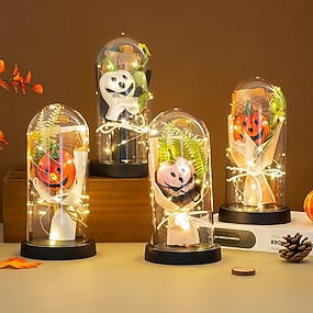 1 buc 15 * 10cm Crăciun Halloween Ziua Îndrăgostiților Ziua Mamei floare eternă luminoasă capac transparent trandafir simulat lumină de noapte LED lumină decorativă pentru birou pandantiv lumină
