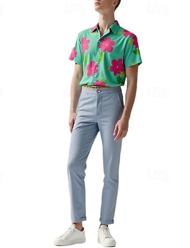Crăciun Bărbați Ren Fulg zăpadă Animal de Crăciun Cămașă Camașă cu nasturi Manșon Lung Amuzant În aer liber Concediu Primăvară Toamnă Răsfrânt Imprimare 3D cămăși cu guler Roșu-aprins Albastru piscină