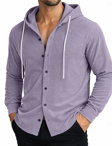 Bărbați Cămașă Cămașă casual Cămasă Corduroy Camașă cu nasturi Negru Alb Verde Deschis Roșu-aprins Bleumarin Manșon Lung Simplu Capișon Casual Zilnic Capișon Îmbrăcăminte Elegant Modă Casual