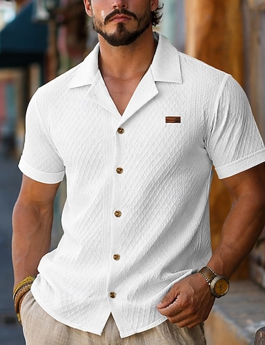 Bărbați Cămașă Cămașă casual Camașă cu nasturi Cămașă Jacquard Alb Kaki Negru Manșon scurt Simplu Guler Cămașă Guler Larg Casual Zilnic Buzunar frontal Îmbrăcăminte Elegant Modă Casual