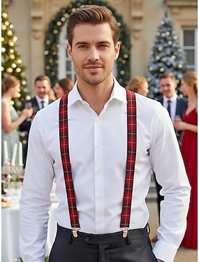 Set bărbătesc cu bretele reglabile și papion în carouri de Crăciun, stil casual și formal, perfect pentru petreceri și cadouri