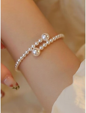 Brățară pentru femei cu perle artificiale, design elegant în două tonuri, perfectă pentru nunți, Ziua Îndrăgostiților și pentru purtare zilnică