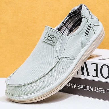Mocasini slip-on verzi pentru bărbați, din pânză, cu model decorativ, respirabili și ușori, ideali pentru resorturi, călătorii și purtare zilnică