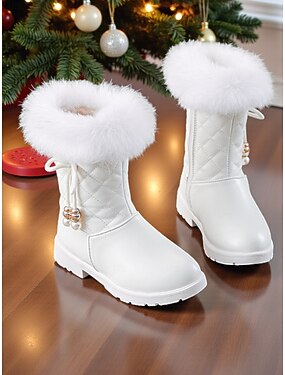 Ghete de iarnă matlasate albe pentru copii cu blană artificială - încălțăminte confortabilă și elegantă pentru Crăciun