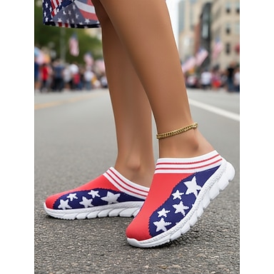 Statele Unite 250 de ani Aniversarea Pantofilor sport tricotati cu imprimeu steagul patriotic pentru femei – Pantofi casual slip-on pentru plimbări în ziua Independenței festivaluri și ținute de zi