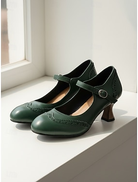 Pantofi cu toc Mary Jane verde închis, vintage, anii 1950, pentru femei - pantofi eleganti brogue cu cataramă pentru petreceri retro, ținute de birou &stil clasic
