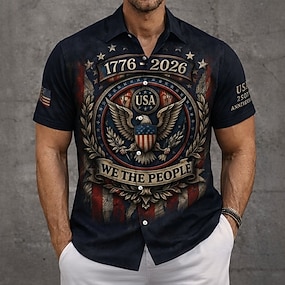 Ziua Independenței Americane Bărbați 4 iulie - 250 de ani de existență a Statelor Unite American / SUA Steagul american Camașă cu nasturi Manșon scurt Stil de stațiune Casual În aer liber Concediu