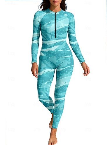 Pentru femei Costum Scufundări din Piele Costum de baie Ocean Abstract Inchide fermuarul Pernițe Detașabile Fermoar Față Protecție UV la soare UPF50+ Ultra Ușor (UL) Manșon Lung Costume de Baie