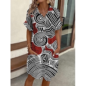 Pentru femei Rochie Mini Rochii Tip Cămașă Rochie casual Rochie imprimata Modă Modern Zilnic Plajă Sfârșit de săptămână Fit regulat Geometric Manșon scurt Guler Cămașă Negru Vară Primăvară Toamnă