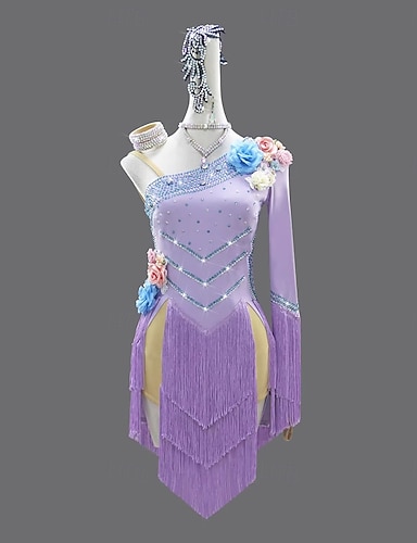 Dans Latin Imbracaminte de dans exotice Dansul salsei latine Rochie Franjuri Pentru femei Performanță Purtare Zilnică Manșon Lung Poliester