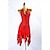Rochie de dans latino pentru femei, roșie, cu strasuri, cu V adânc, franjuri, rochie de competiție de bal la salon