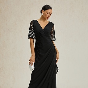 Pentru femei Rochii Midi Rochie teacă Rochii Tip Sirenă Elegant Petrecere cocktail În aer liber Petrecere Invitat la nunta plus ridicat scăzut Fit regulat Culoare solidă Lungime Manșon 3/4 În V Negru