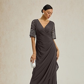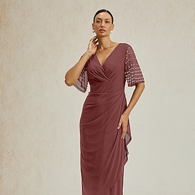 Pentru femei Rochie Maxi Rochie împachetată Rochie A line Elegant Oficial Invitat la nunta Petrecere cu cocktail Fit regulat Simplu Manșon scurt În V Roșu Vin Vară