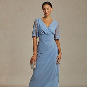 rochie de nunta de dama rochie simpla rochie midi dantela sifon mozaic casual decolteu cu maneca 3/4 rochii de cocktail rochii formale culoare albastra