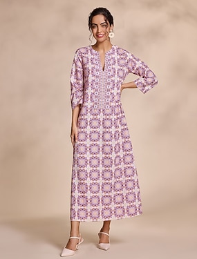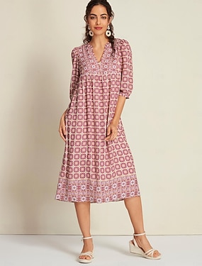 Rochie midi din satin mătăsos cu model totem etnic