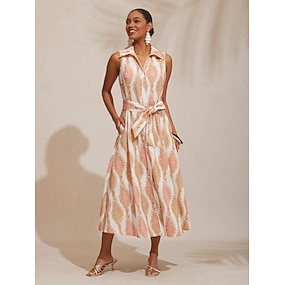 rochie maxi cu guler de cămașă, cu curea, buzunar, stil vacanță