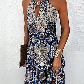 Pentru femei Rochii Midi Rochie A line Casual Zilnic Fit regulat Grafic Imprimeu Paisley Fără manșon În U Albastru piscină Roz Îmbujorat Mov Trifoi Vară Primăvară
