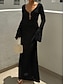 Pentru femei Rochii Midi Rochie neagra Rochie de petrecere Rochie de Cocktail Rochie din satin Elegant Modern Petrecere Serată Fit regulat Simplu Manșon Lung În V Negru Alb Roz Îmbujorat Roșu Vin