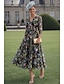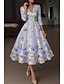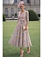 Linia -A Lungime Podea Lungimea ceaiului Rochii de cocktail Elegant Epocă Floral Manșon scurt În V Petrecere în grădină Nuntă Buzunar Satin cu Imprimeu Floral Pliuri Buzunar