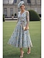 Linia -A Lungimea ceaiului Rochii de cocktail Rochii de seara Rochii de petrecere Elegant Stil Vedetă Floral Lungime Manșon 3/4 Pătrat Petrecere în grădină Nuntă Dantelă cu Aplică