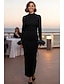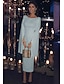 Coloană Teacă Lungimea ceaiului Rochii de cocktail Rochii de petrecere Elegant Petrecere Mica Rochie Albă Manșon Lung Bijuterie Invitat la nunta Concediu Invitat la nunta de toamna Tricot Fără Spate