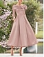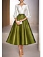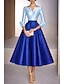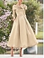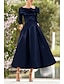 Linia -A Lungimea ceaiului Rochii de cocktail Rochii de petrecere Elegant Epocă Lungime Manșon 3/4 Pătrat Nuntă Oficial Buzunar Satin cu Arc Buzunar