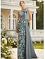 Linia -A Coloană Teacă Lungime Podea Brodat cu mărgele Rochie formala Rochia Mamei Miresei Rochii de seara Rochie de bal cu fustă lungă Rochie formală Elegant strălucitoare Stil Vedetă Manșon Lung Pe