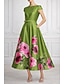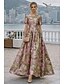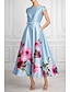 Linia -A Lungime Podea Rochii de seara Rochie de bal cu fustă lungă Rochie formală Elegant Epocă Fără manșon Stil Nautic Nuntă Oficial Italia Satin cu Imprimeu Floral Buzunar