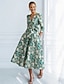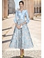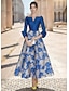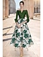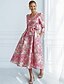Linia -A Lungimea ceaiului Rochii de cocktail Elegant Epocă Floral Lungime Manșon 3/4 În V Petrecere în grădină Nuntă Buzunar Satin Jaquard cu Imprimeu Floral Pliuri Buzunar