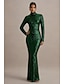 Trompetă Sirenă Lungime Podea Rochii de seara Elegant strălucitoare Stil Vedetă Manșon Lung Gât Înalt Petrecere în grădină Nuntă Paiete cu Strălucire