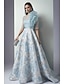 Linia -A Lungime Podea Rochii de seara Rochie De Bal Rochie formală Elegant Floral Split de înaltă Manșon Lung În V Nuntă Oficial Buzunar Jaquard Glugă la Spate cu Imprimeu Floral Buzunar