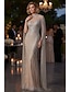 Trompetă Sirenă Lungime Podea Rochii de seara Elegant Strălucitor & Sclipitor Manșon Lung Iluzii Carnaval Mascaradă Rochie de Mama Miresei sampanie Satin Paiete cu Detalii Perlă Supra-fustă