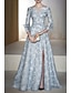 Linia -A Lungime Podea Rochii de seara Rochie De Bal Rochie formală Elegant Epocă Manșon Jumate Guler Cămașă Nuntă Oficial Buzunar Satin cu Imprimeu Floral