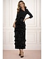 Coloană Teacă Lungime Podea Rochie formala Rochie de seara Rochii de seara Elegant Epocă Manșon Lung Gât Înalt Oficial Invitat la nunta cu Piatră Semiprețioasă Flori 3D