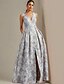 Linia -A Lungime Podea Rochie formala Rochii de seara Rochie De Bal Rochie formală Elegant Split de înaltă Fără manșon În V Petrecere în grădină Nuntă Jaquard cu Rochie cu fanta