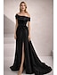 Linia -A Lungime Podea Rochii de bal Rochii de seara Rochie De Bal Rochie formală Elegant strălucitoare Split de înaltă Manșon scurt Pătrat Crăciun Oficial Buzunar Satin cu Pliuri