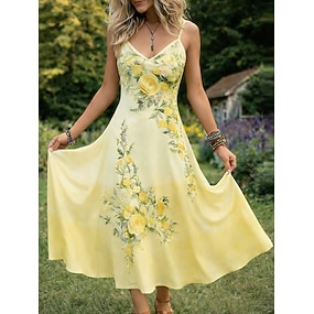 Pentru femei Rochie Maxi Rochie de Vară Rochie A line Rochie Slip Vacanță Casual Plajă Fit regulat Floral Grafic Fără manșon În V Albastru piscină Galben Roz Îmbujorat Vară Primăvară