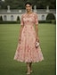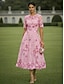 Linia -A Rochii Lungime Gleznă Lungimea ceaiului Rochie de petrecere Rochie de Cocktail Rochie Mama Miresei Manșon scurt Stil Nautic Iluzii Elegant Epocă Luxos Oficial Invitat la nunta Kentucky Derby