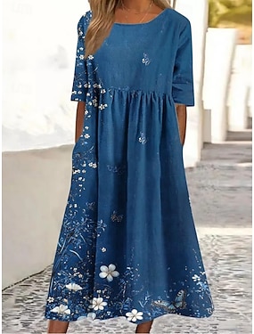 Pentru femei Rochii Midi Rochie de schimb Rochii Tricou Casual Zilnic Fit regulat Floral Grafic Manșon scurt Stil Nautic Albastru piscină Șampaniu Verde Deschis Roz Îmbujorat Vară Primăvară