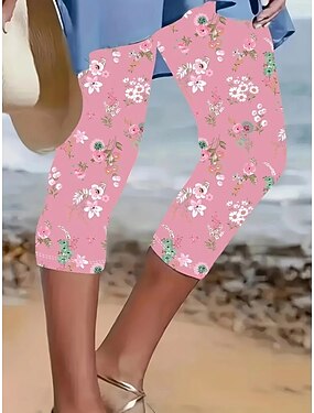 Pentru femei chinez Jambiere Vacanță Modă Șic Stradă Capris Talie Înaltă Floral Grafic Confort Απαλό Comfortabil Înaltă Elasticitate Zilnic În aer liber Vacanță Roz Trifoi Vară Primăvară Slim Fit