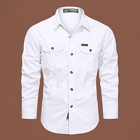 Bărbați Cămașă Cămașă de in Cămașă de vară Camașă cu nasturi Cămașă cargo Simplu Casual Zilnic Negru Alb Albastru piscină Kaki Manșon Lung Guler Vară Primavara vara Îmbrăcăminte Buzunar