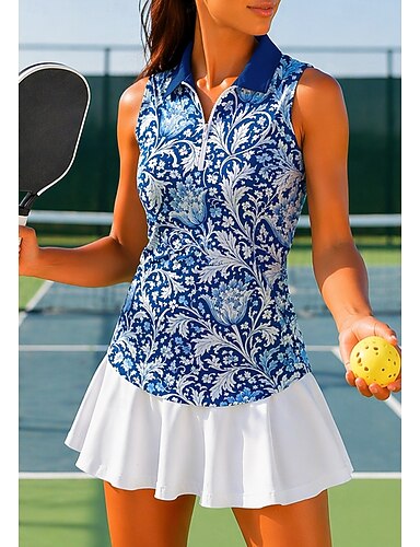 Pentru femei Plante Floral Tops Tricou sport Tricou POLO Cămașă de tenis Fără manșon Fermoar Înaltă Elasticitate Confortabil la umezeală Respirabil Tenis Pickleball Alergat Răsfrânt Guler cu fermoar