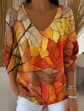 Pentru femei Pulover Casual Moale Floral Dungi Striat În V Tricotat Manșon Lung Topuri obișnuite Tricotat În aer liber Zilnic Sfârșit de săptămână Mov Portocaliu Primăvară Toamnă