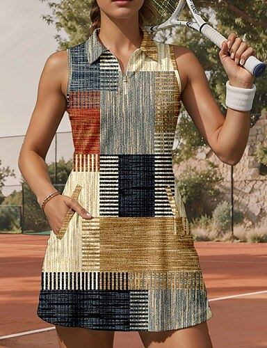 Pentru femei Tartan / Carouri Rochie de tenis Rochie sport Fără manșon Imprimeu Respirabil Tenis Golf Badminton Gulerul Polo Guler cu fermoar Rochii Kaki Îmbrăcăminte de tenis