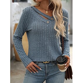 Pulover pentru femei culori uni bluze de zi stilat casual mânecă lungă guler rotund bluze de zi nasturi albastru fucsia verde caise gri vară primăvară toamnă