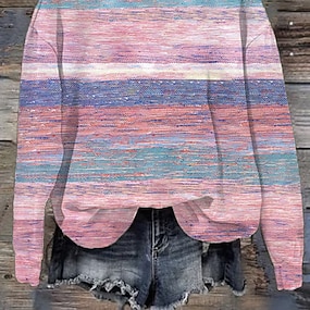 Pentru femei Tricou Imprimeu Ombre Grafic Gradient de culoare Epocă Stilat Clasic Manșon Lung În V Topuri obișnuite Zilnic Sfârșit de săptămână Albastru piscină Roșu-aprins Verde Închis Portocaliu Gri