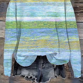 Pentru femei Tricou Imprimeu Grafic Geometric Geometrie Epocă Modă Stilat Manșon Lung Stil Nautic Topuri obișnuite Zilnic Albastru piscină Negru Verde Deschis Mov Vară Primăvară Toamnă