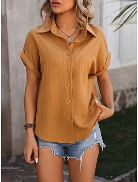 Pentru femei Bluză Nasturi Culoare solidă Stilat Casual Manșon scurt Guler Cămașă Topuri obișnuite Zilnic Negru Alb Galben Fucsia Trifoi Vară Primăvară Toamnă Iarnă